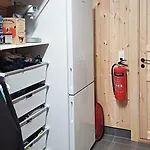 Cabin With Panoramic Views At Syndin Plateau Ryfoss dispose d'une cuisine équipée équipée d'une cafétière/théière électrique, d'un réfrigérateur et de la vaisselle.